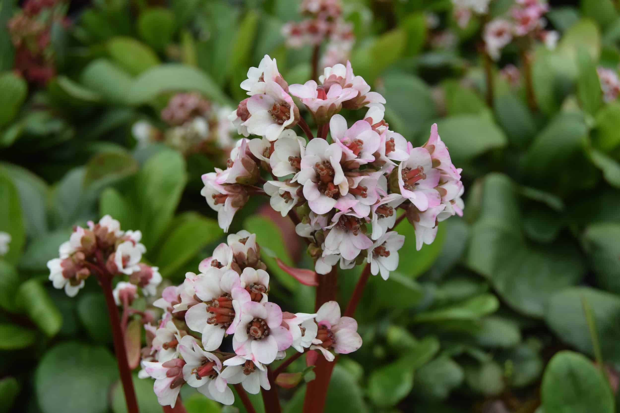 Clump-forming perennial with rounded green leaves. White flowers on the erect red-flushed stems. Max Height 40cm. Flowers March/April. Full sun/partial shade. Hardy.