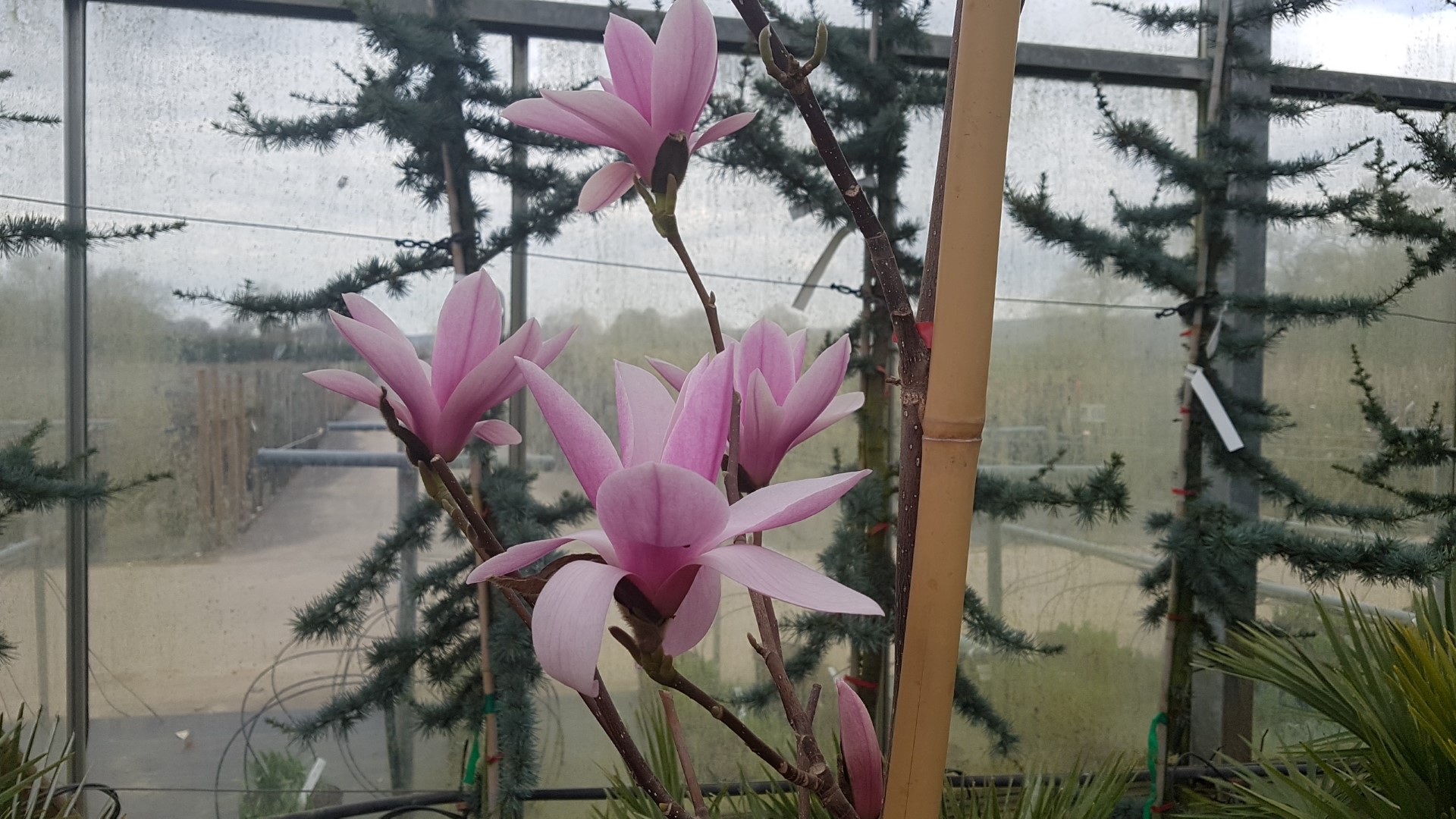 A spreading tree with glossy; mid-green leaves and goblet-shaped; pink flowers outside and white inside; produced from mid-spring to early summer. Max Height 10m. Max Spread 10m. Flowers April to June. Full sun/partial shade. Hardy. Back-fill with soil mixed with peat substitute and a suitable fertiliser.